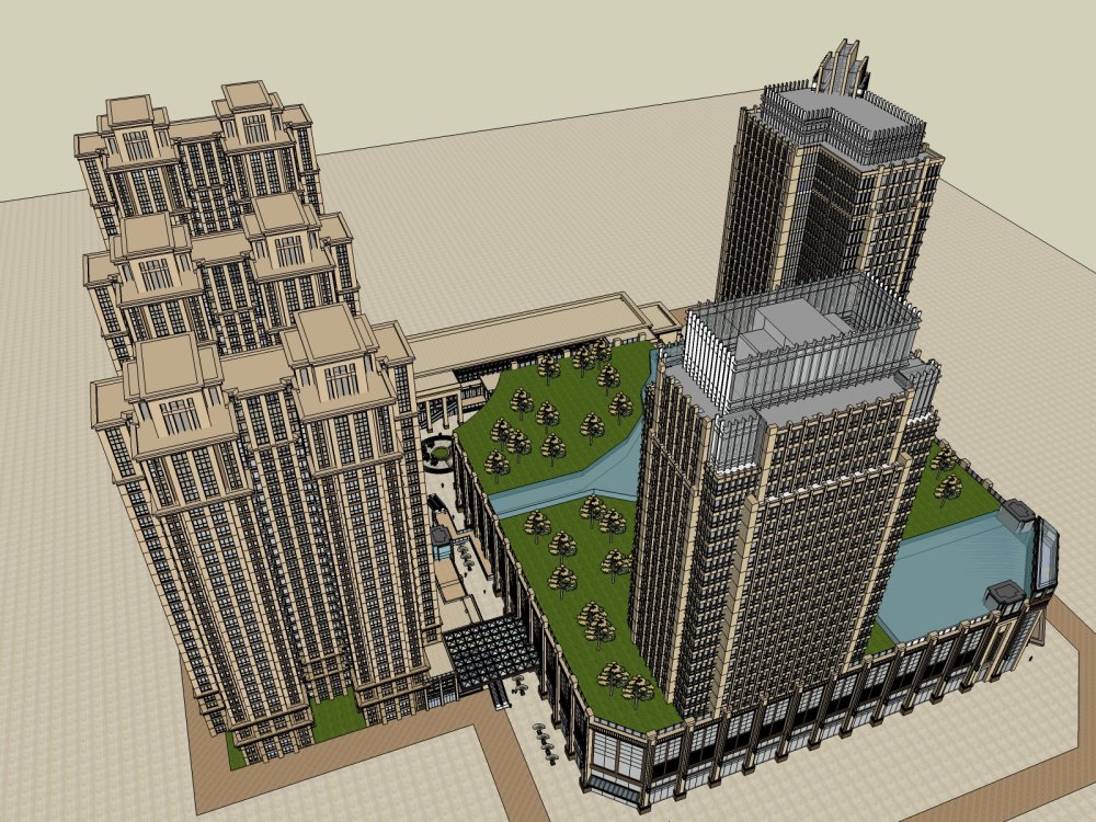 美式现代风格商业综合体,两栋高层写字楼,三栋住宅楼